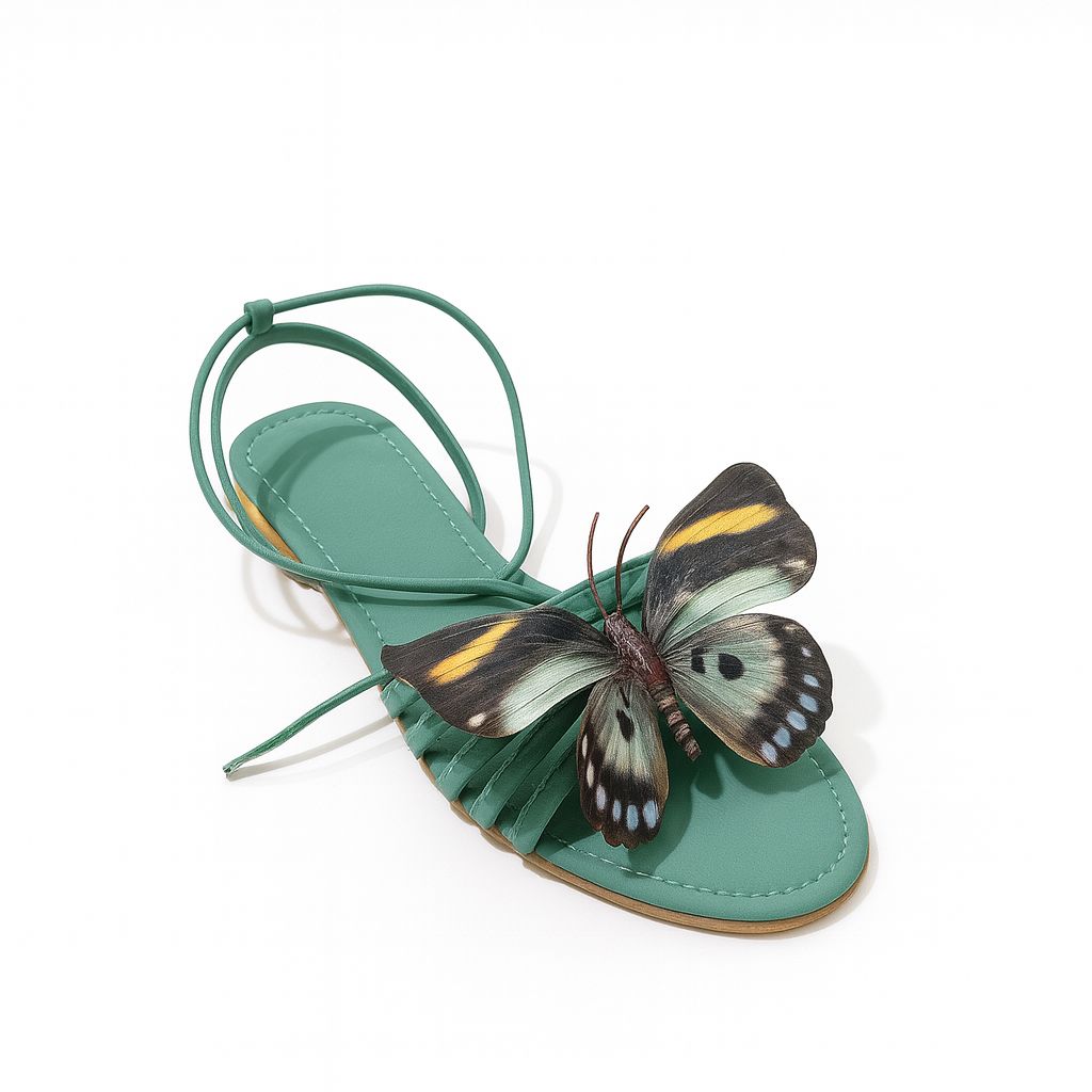 Butterfly Bloom is a playful, eye-catching sandal made for bold styling. The soft green base is adorned with a large 3D butterfly that adds artistic charm. With comfortable straps, cushioned insole, and a lightweight feel, this pair is ideal for summer outings, resort looks, and fashion-forward styling.