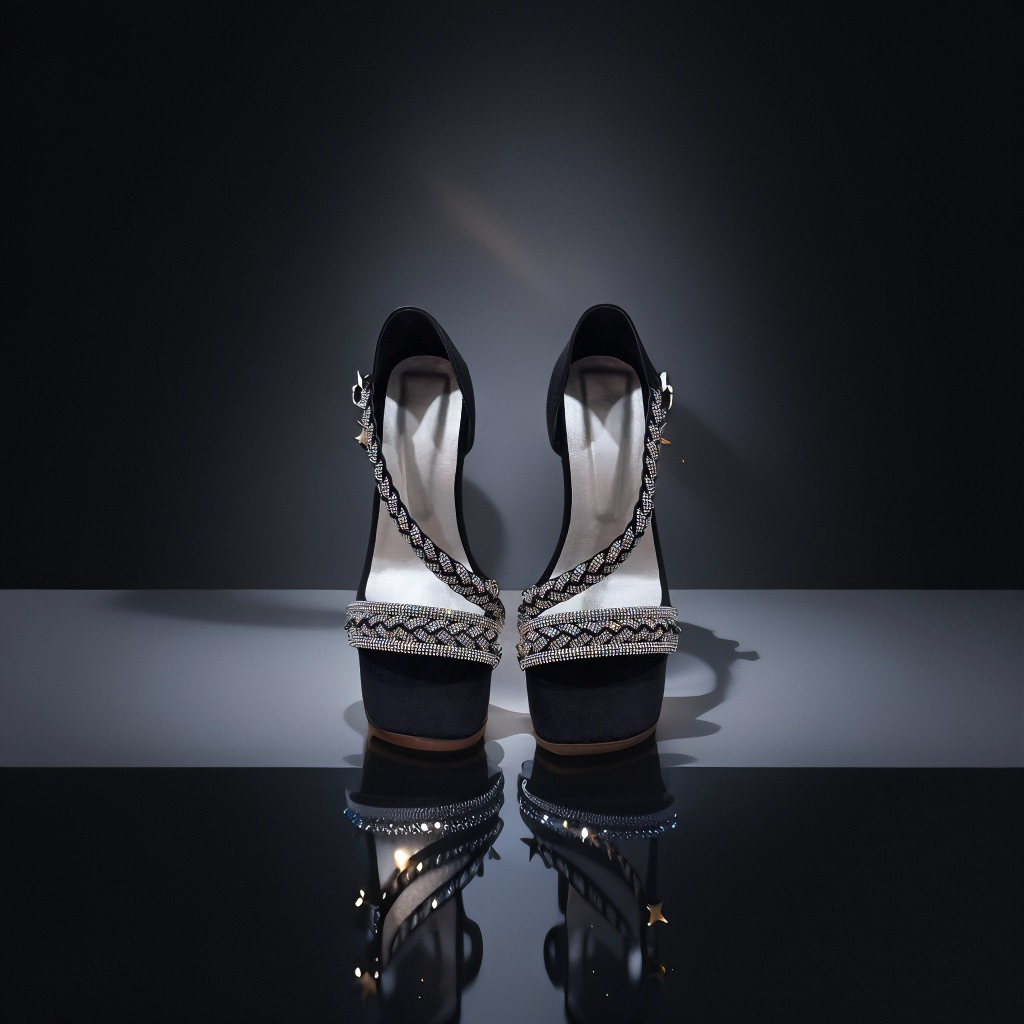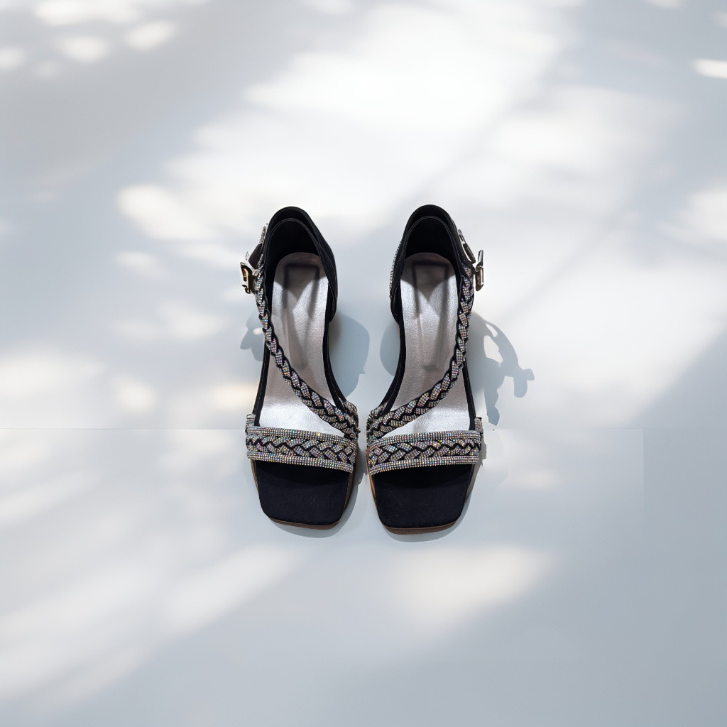 Step into timeless sophistication with Noir Gleam from Eleve by VAYA. Crafted with delicate shimmer straps and a sleek silhouette, this pair blends comfort with refined elegance. Perfect for evening soirées or festive nights, it’s designed to make every step effortlessly graceful.